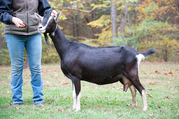 Sharpie freshen in March 2025 with a very good looking set of bucklings. She has milked very well this lactation, peaking around 11-12lbs despite some lasting udder damage from a bad staph mastitis. She is milking through the 2025-2026 season and is currently producing about 6 lbs daily (Jan. 2026).